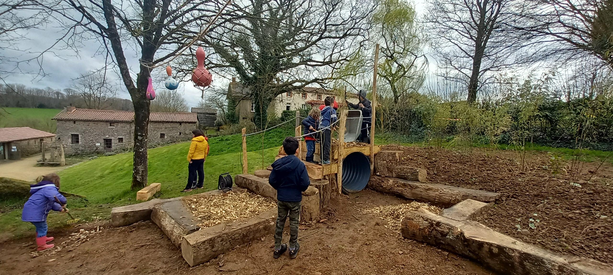 Le jardin permet aussi d’organiser des chantiers collectifs intergénérationnels où grands-parents, parents, enfants, habitants du territoire se retrouvent pour faire-ensemble. L’année dernière, nous avons construit un espace dédié aux enfants. Après avoir pris un temps d’échange sur ce que voulaient les enfants et les parents, nous avons organisé plusieurs chantiers collectifs. Construit à l’aide de matériaux naturels respectueux de notre environnement, l’Îlot des Robinson a pour vocation d’accueillir les enfants et les parents pour qu’ils puissent s’épanouir, jouer ensemble, tout en favorisant la mixité et les liens familiaux.
