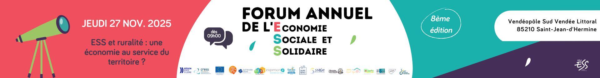Dans le cadre du Mois de l’Économie Sociale et Solidaire, le Pôle ESS Vendée co-organise en partenariat avec ses adhérent·e·s la 8ème édition du Forum annuel de l’Économie Sociale et Solidaire.